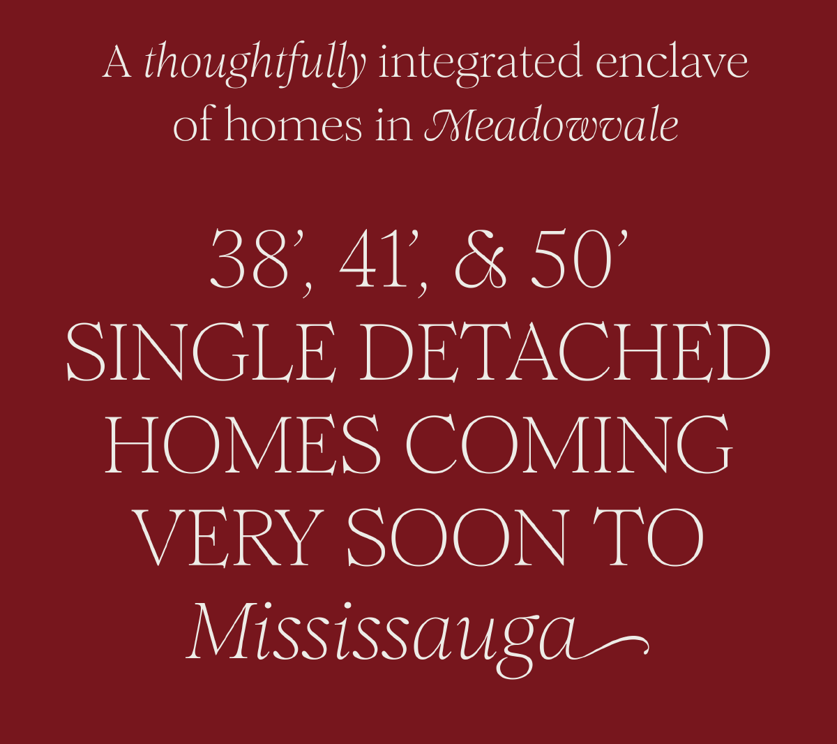 Novella Homes is an upcoming pre construction single detached homes community in Meadowvale, Mississauga by Greenpark Group. Register now to get VIP access, floor plans, and the latest price list.